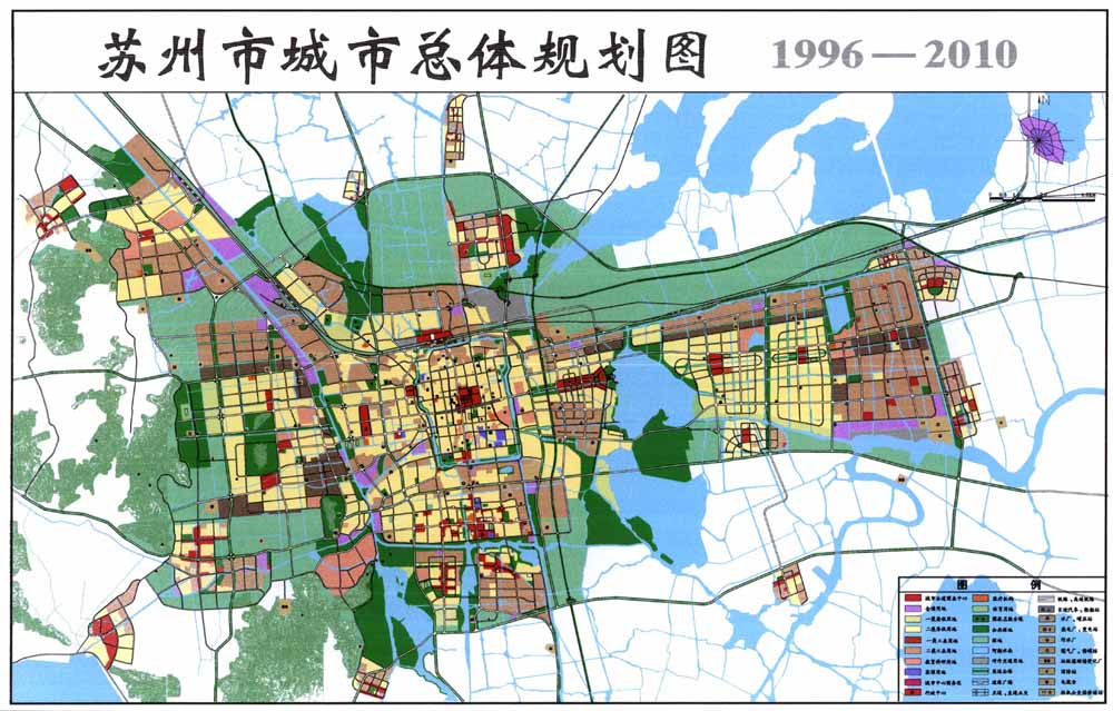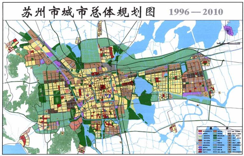 城市總體布局:總體布局分都市圈、中心城(包括吳縣市區(qū))、古城三個(gè)層次,形成以中心城為主體,周邊城鎮(zhèn)衛(wèi)星烘托的形態(tài)。