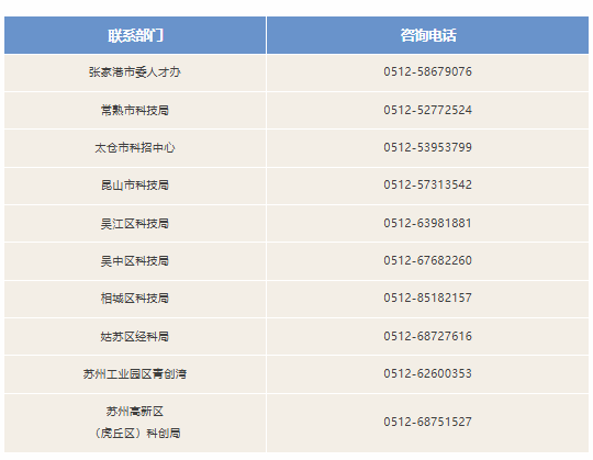 市工信局技術(shù)創(chuàng)新與人才處(高端人才認(rèn)定):0512-68615536;