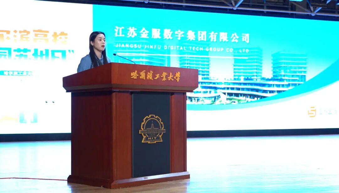 哈爾濱工業大學校友、蘇州西恩科技聯合創始人曹世昌分享在蘇州的創業故事,講述選擇蘇州的多重優勢,邀請學弟學妹來蘇逐夢。用人單位代表江蘇金服數字集團有限公司進行推介,彰顯蘇州產業活力與引才誠意。