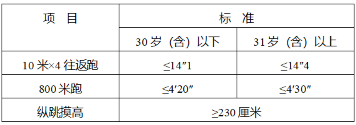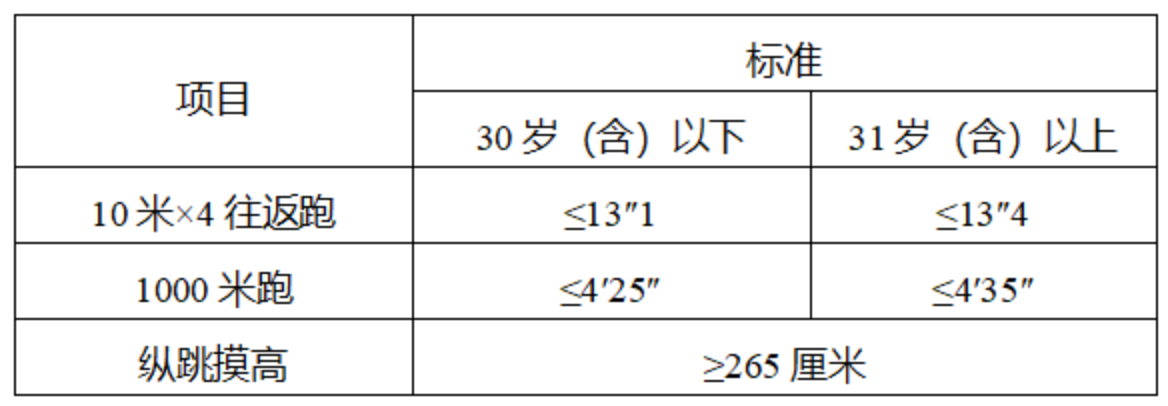 年齡計算時間截止到參加體能測評當月。如體能測評在2026年2月實施,則1995年2月(含)以前出生的報考者,執行31歲(含)以上體能測評標準,1995年3月(含)以后出生的報考者,執行30歲(含)以下體能測評標準。具體測試方式見公安部2024年3月公布的《公安機關錄用人民警察體能測評實施規則》。