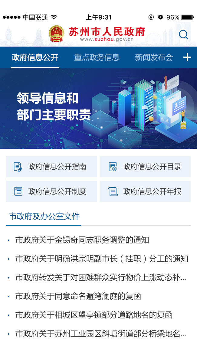 蘇州市政府客戶端是蘇州市人民政府發布政務信息和提供在線服務的新媒體平臺,由蘇州市人民政府辦公室主辦,蘇州市政府門戶網站管理中心承辦。