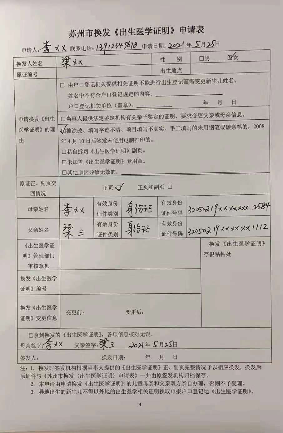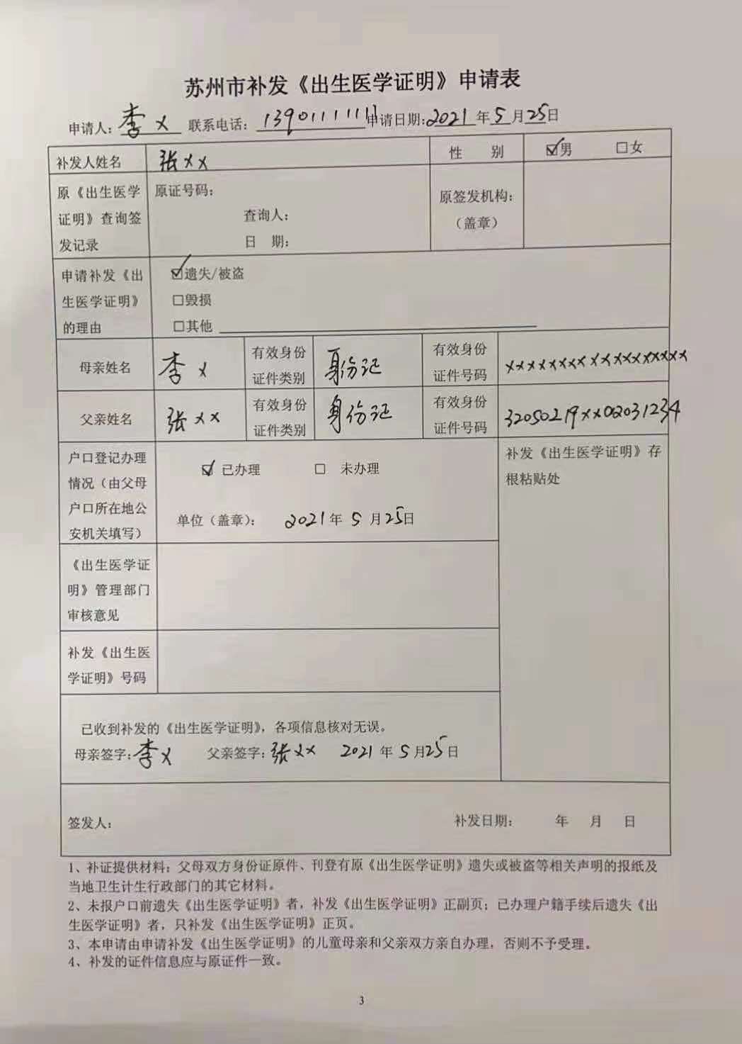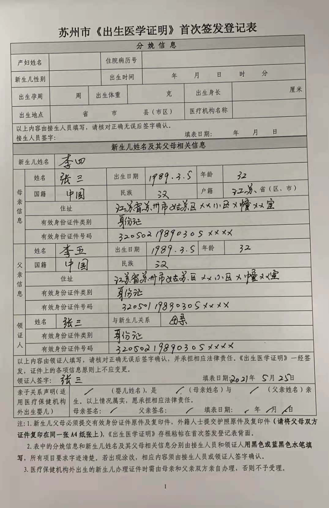 | 申請條件: | 填寫《蘇州市<出生醫學證明>首次簽發登記表》 |