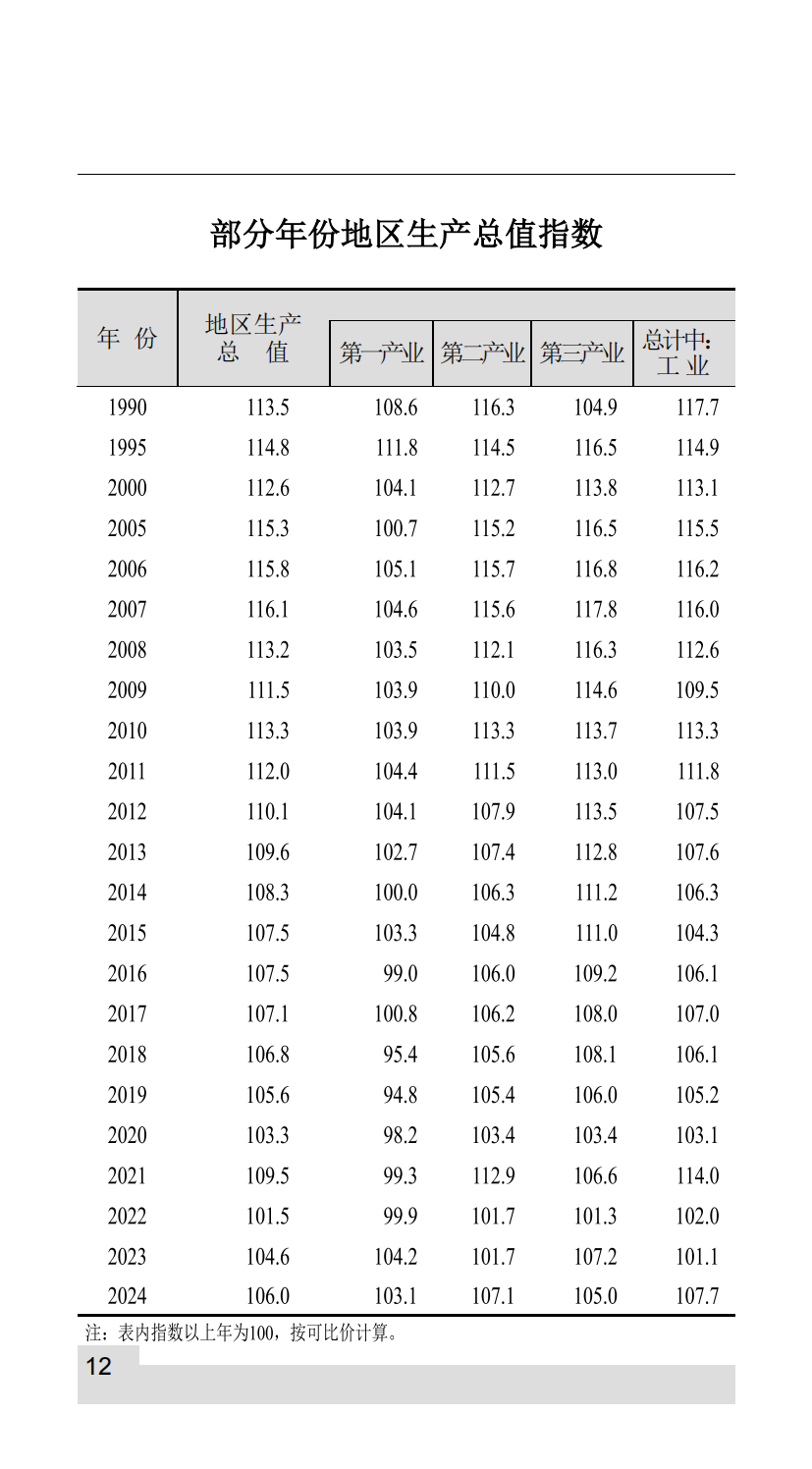 部分年份地區(qū)生產(chǎn)總值指數(shù)