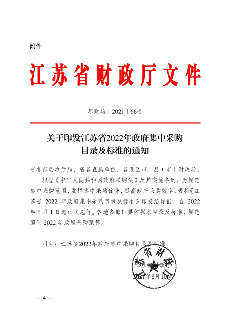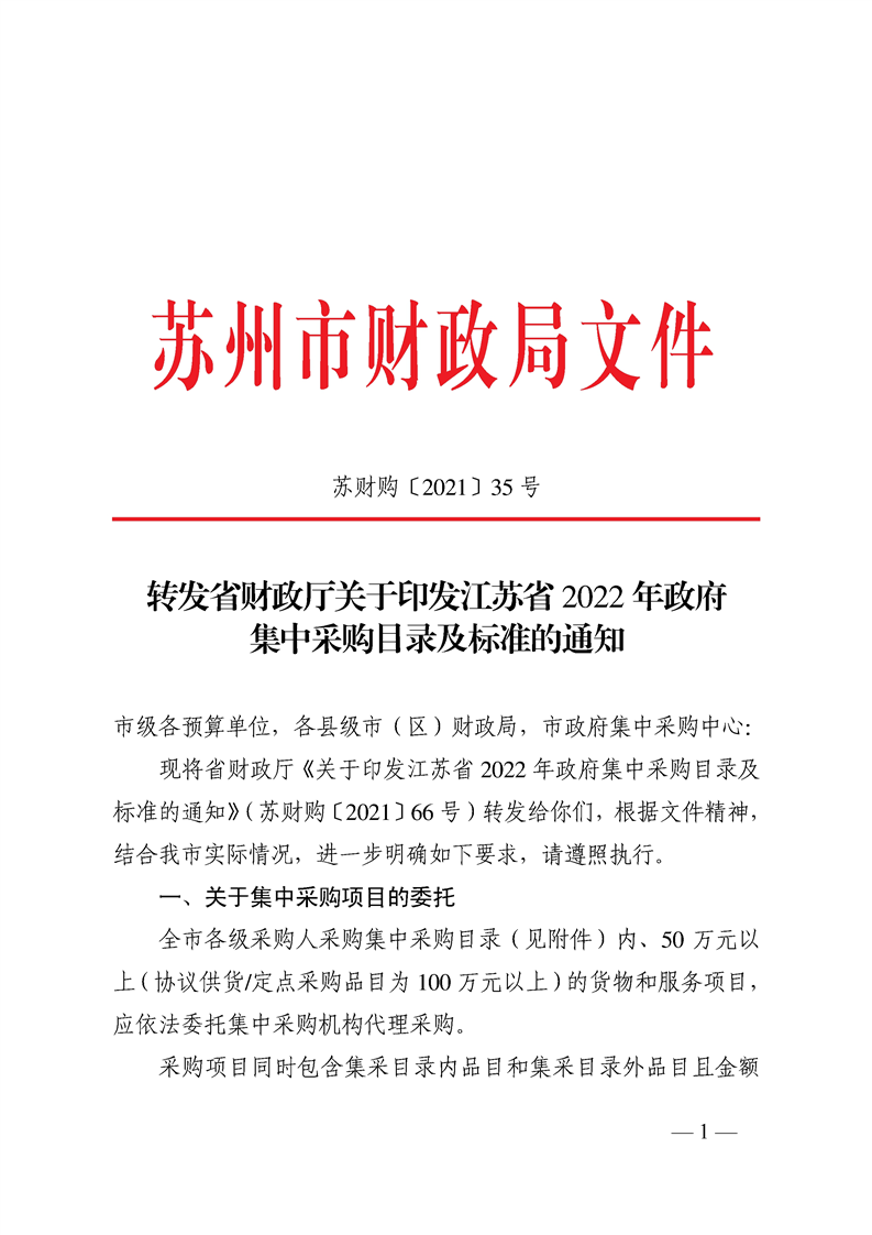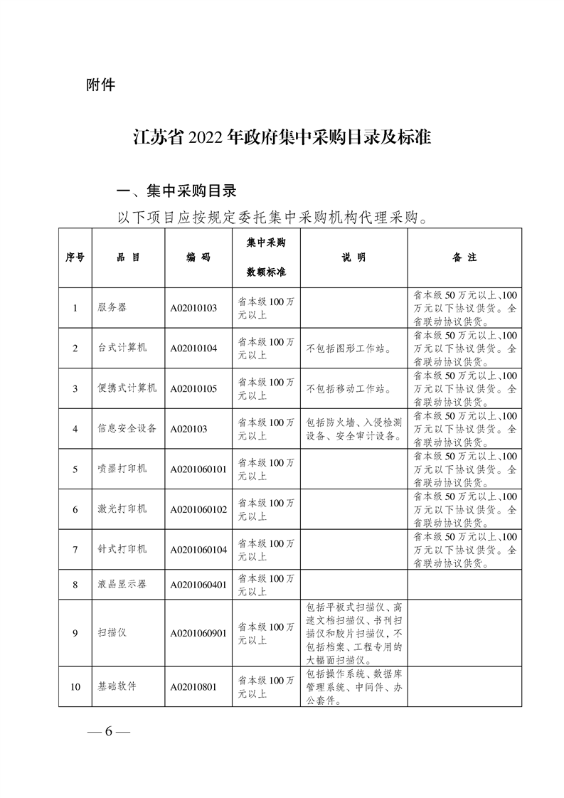 轉發省財政廳關于印發江蘇省2022年政府集中采購目錄及標準的通知